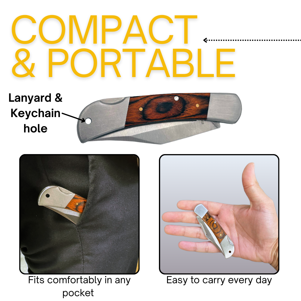 Rtek 3.75" Spanish Brown Wood Handle Pocket Knife, Lockback Traditional Folding Knife for Outdoor, Utility, EDC, Camping, and Every Day Carry, Gifts for Men